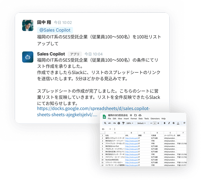 商談予定が入ると、その会社の情報を自動収集し、準備資料を一式作成します。